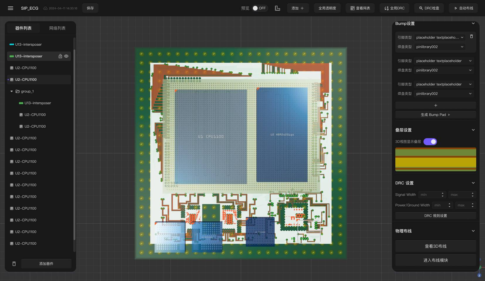 目标:开发一个集成原理图、网表、3D 布局和 2D 布线的 EDA 设计平台,提高芯片设计的效率和灵活性。